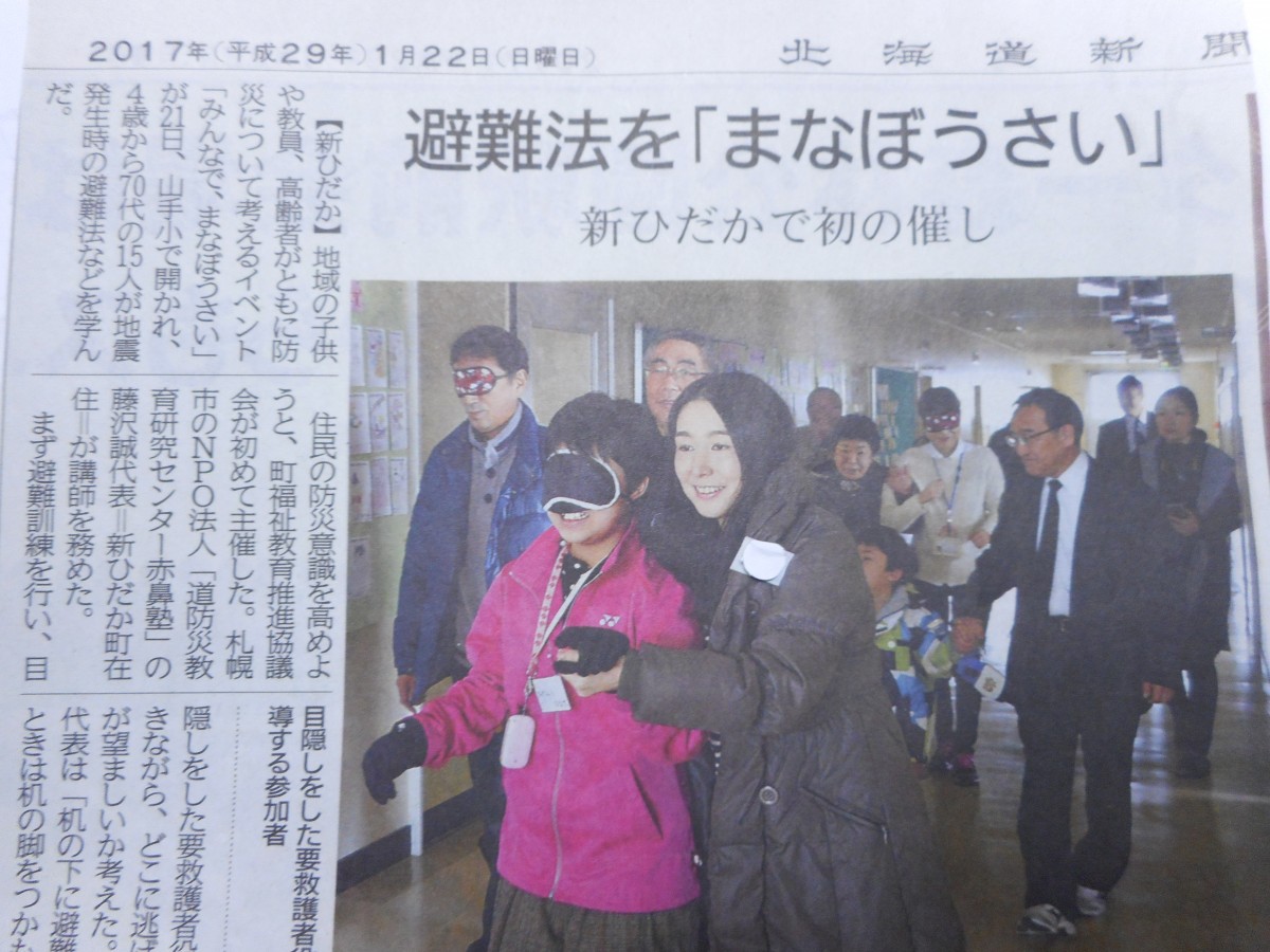 札幌都心部で大規模地震が発生して帰宅困難者になった!を想定した初めての防災冬キャンプ(防災訓練)でした。NHKと民法のテレビ局がニュースのトップで取り上げるほど注目のイベントでした。平成27年1/31付け札幌版の北海道新聞にも特集記事が載りました。