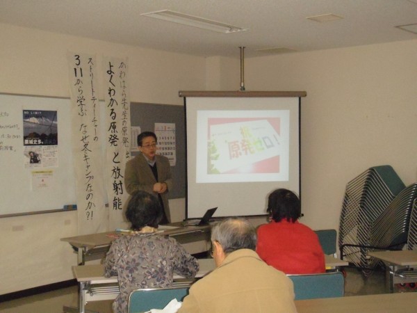 現役高校教師の川原茂雄教諭を講師にお招きして、「かわはら先生の原発出前授業」とストリート・ティーチャーの「3・11から学ぶ 防災冬キャンプのすすめ なぜ、冬キャンプなのか」を開催しました。