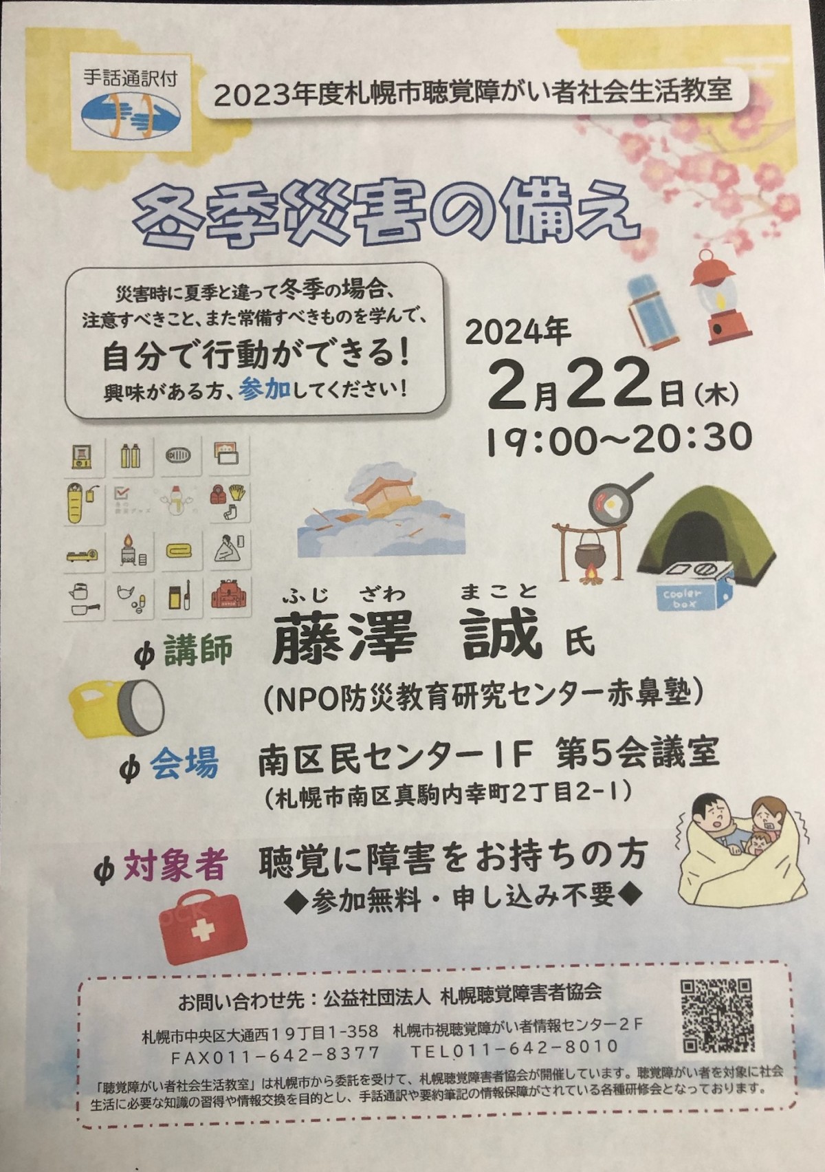 札幌聴覚障害者協会主催「冬季災害の備え」