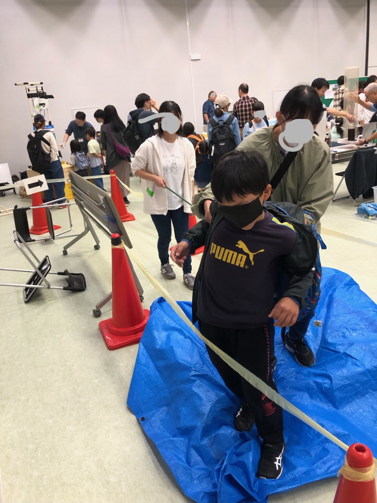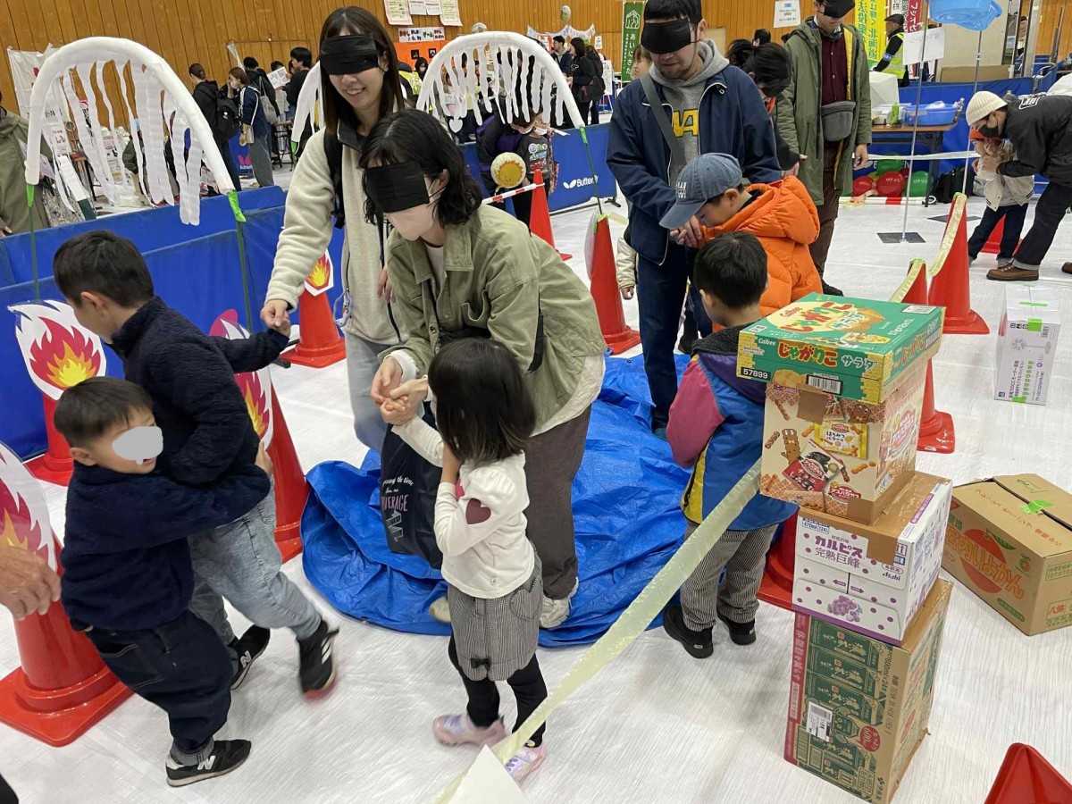 「脱出型防災訓練エスケープ」は「ひなんくんれんゲーム」の拡大版といえるギミックを10種類設定して実施しました。人気のギミックは「煙ゾーン」「液状化現象ゾーン」「炎上ゾーン」と並び、ギミックではありませんが「司会進行のMC」も人気でした!?