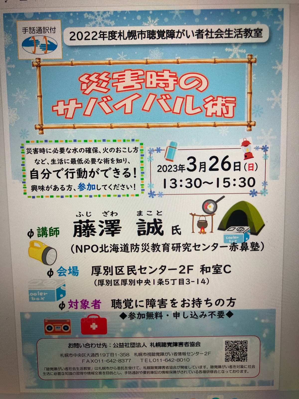 札幌聴覚障害者協会主催「災害時のサバイバル術」