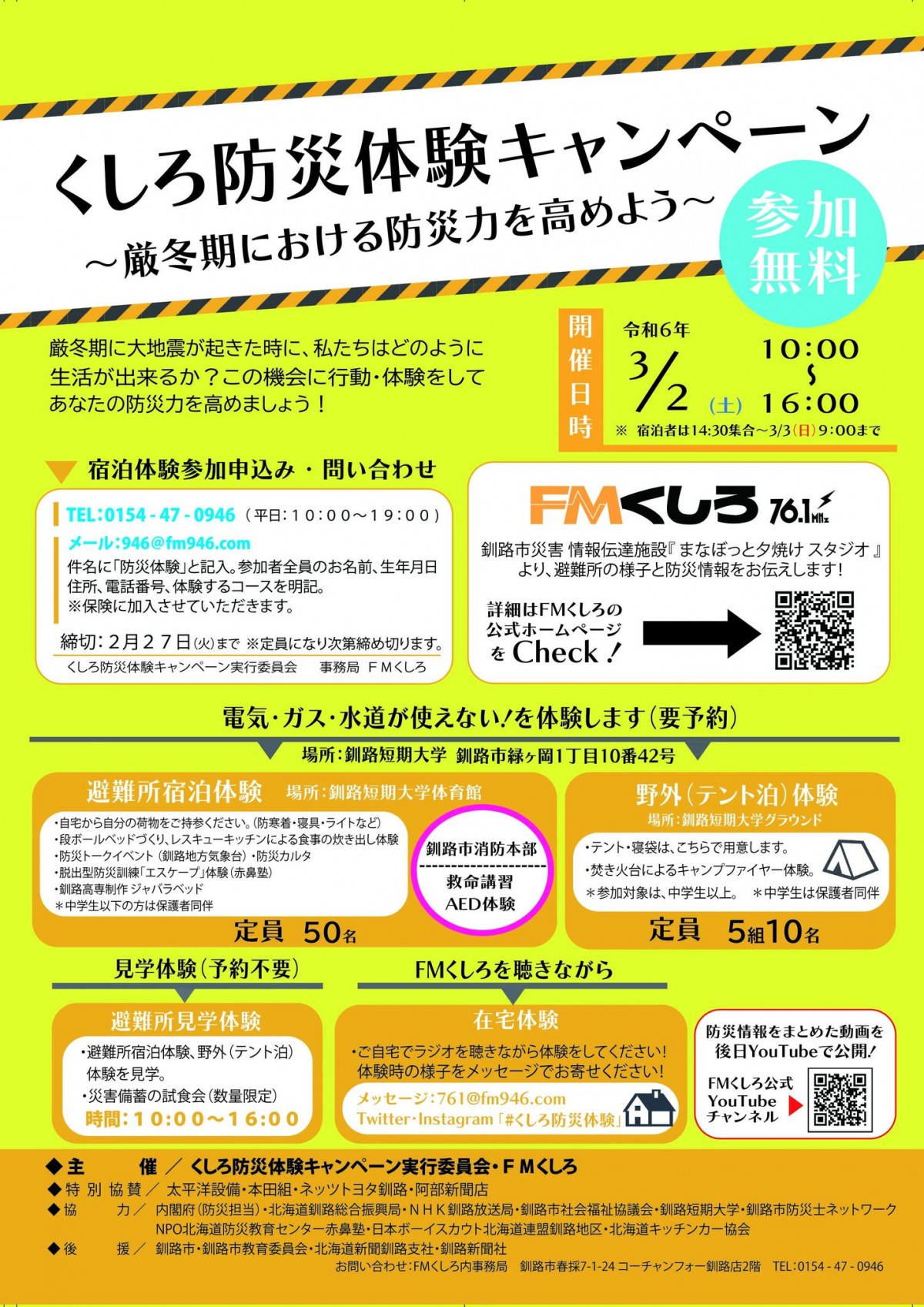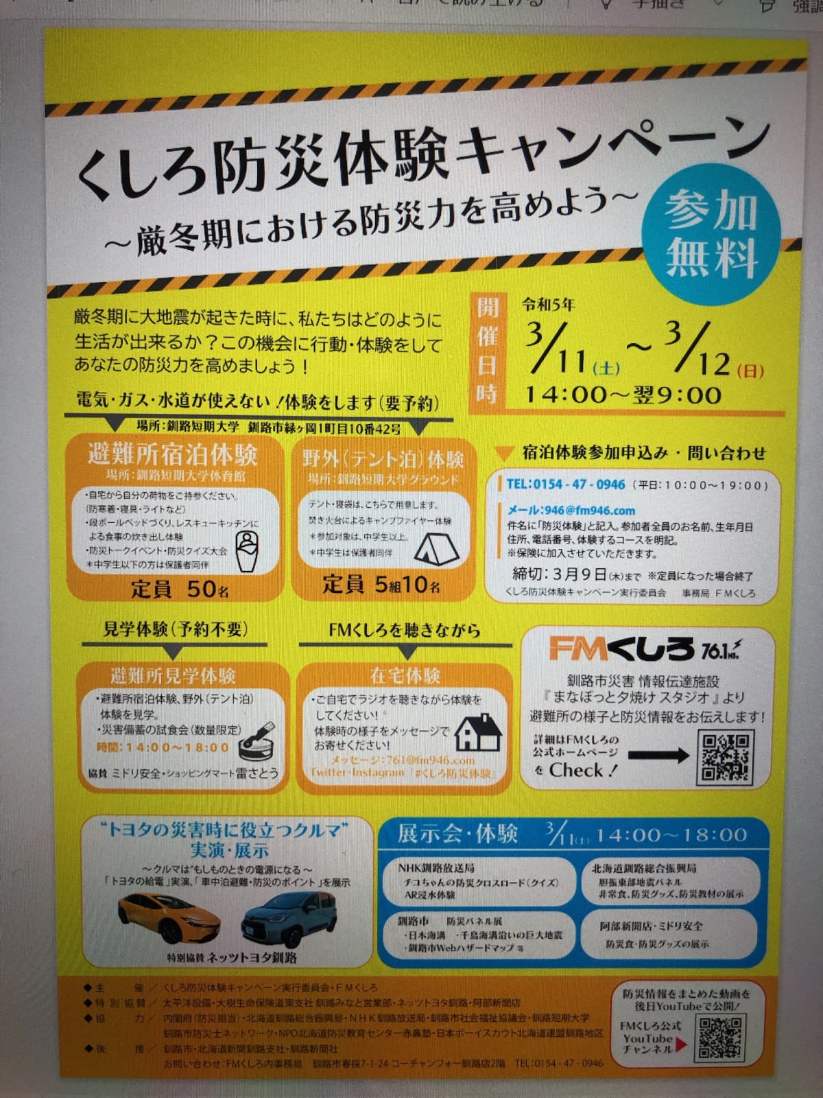 くしろ防災体験キャンペーン2025令和7年(2025)3月1、2日(土日)FMくしろ主催