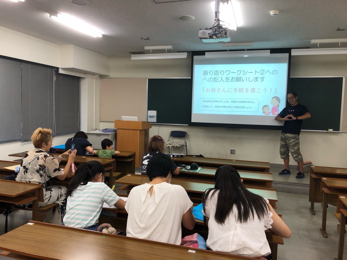 ワークショップとして開催しました。振り返りでは、参加者で意見交流と自分の考えをまとめました。最後にアウトプット(人に教える)として「母に手紙を書く」ことで定着を促しました。