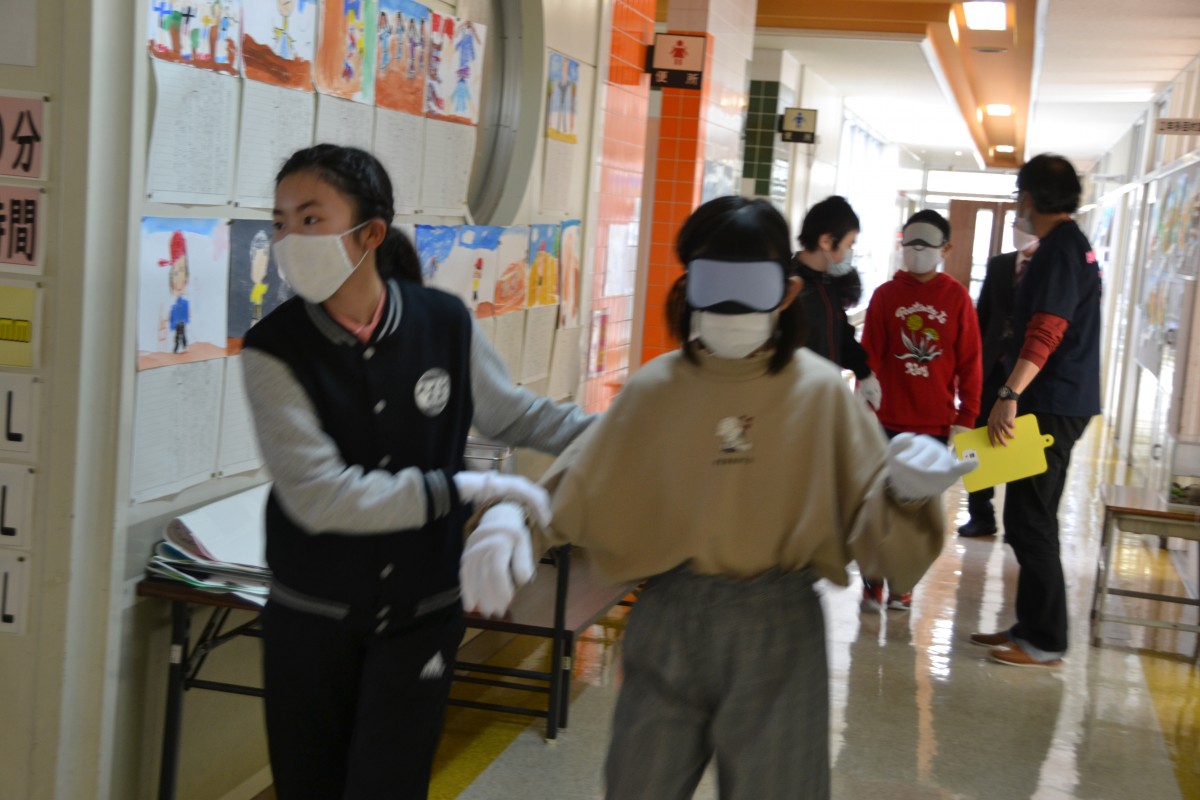 「様々な状況(目隠し、骨折)での避難を体験出来たのが良かった。誘導する側、される側それぞれやってみて、誘導の難しさ、けがをしている側の気持ちなどを感じることができました。実際に体験してみないとわからないものもあるなと感じました。