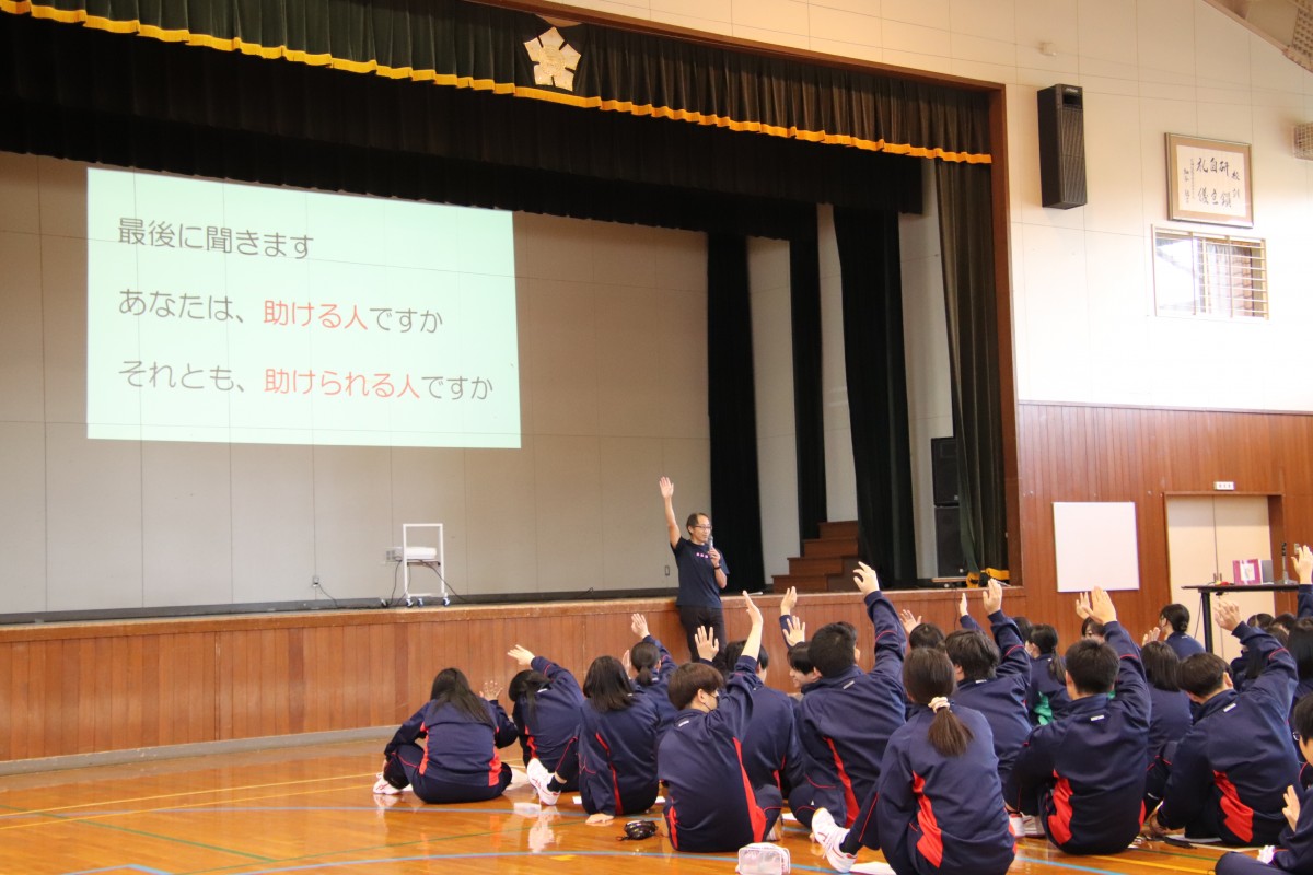 3年男子「困っている人がいたら積極的に助けていきたい。ひなんくんれんゲーム楽しかった。このような、ゲーム感覚でやると、楽しくできるし、身に入りやすいと思った」