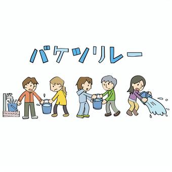 バケツリレーは実践的ではありませんが、チームで体を動かす運動会的なノリでできそうです。「消火器で火を消す競争」や、「備蓄食(パン)食い競争」なんていうのも有りかな。ご依頼者のニーズに応えることも大切ですね。