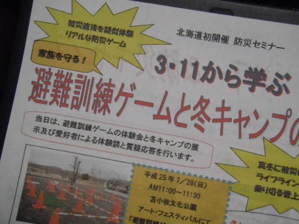 9/14(土)~15(日)、10/5(土)~6(日)13:00~翌11:00 「避難所疑似体験ツアー」雪月化花廊(喜茂別町)お客様の案内、炊き出し炊事、防災ゲームの参加、体育館内シュラフで宿泊等。日帰り可能です。