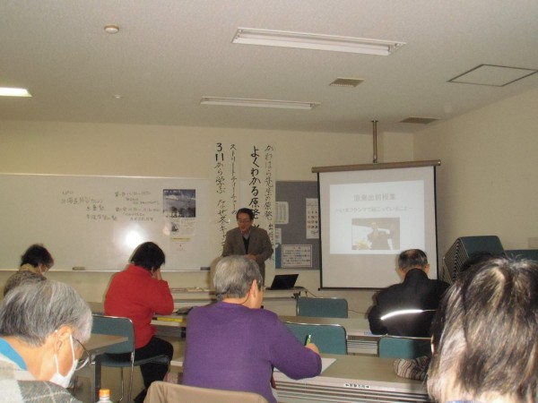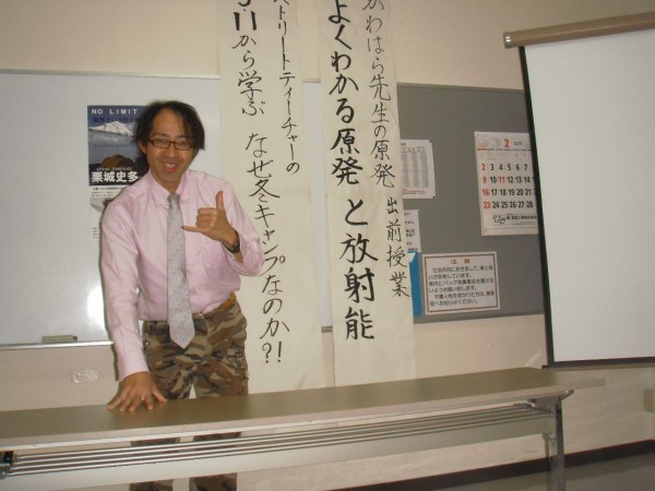 平成26年2月9日(日)現役高校教師の川原茂雄教諭を講師にお招きして、「かわはら先生の原発出前授業」とストリート・ティーチャーの「3・11から学ぶ 防災冬キャンプのすすめ なぜ、冬キャンプなのか」を開催しました。