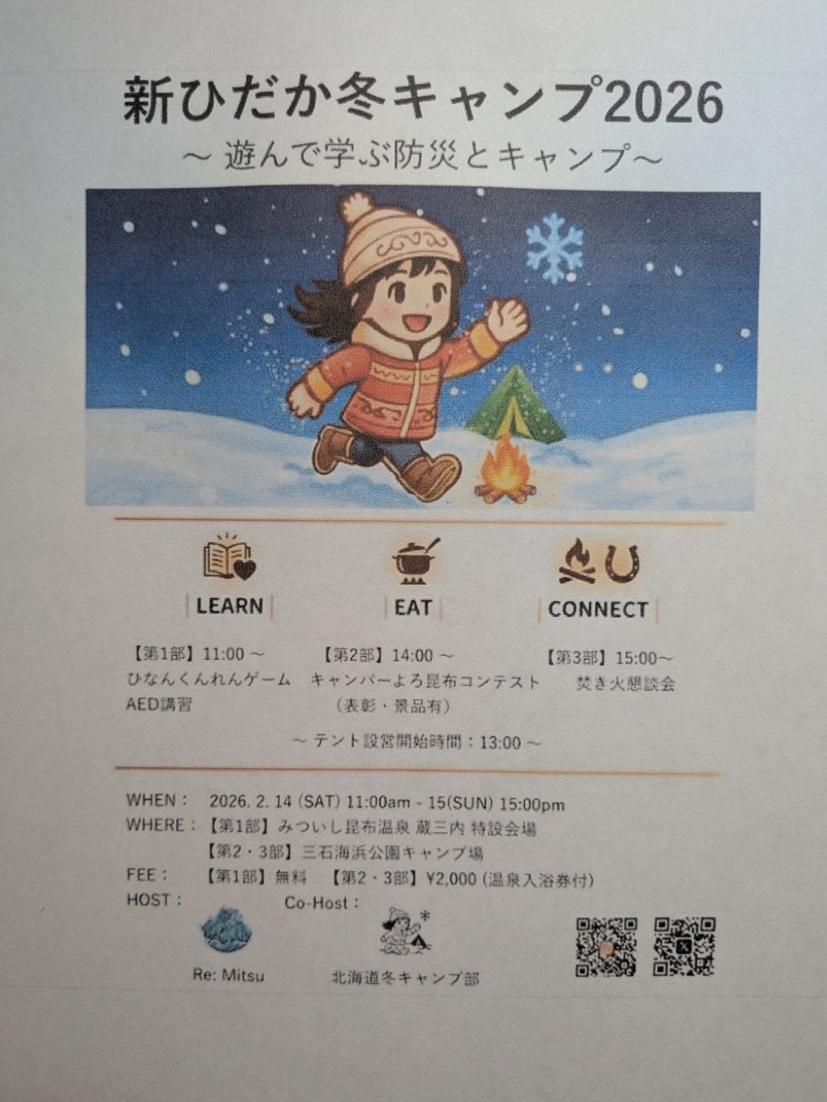 新ひだか冬キャンプ2026 「ひなんくんれんゲーム」出展します! 令和8年2月14日(土)